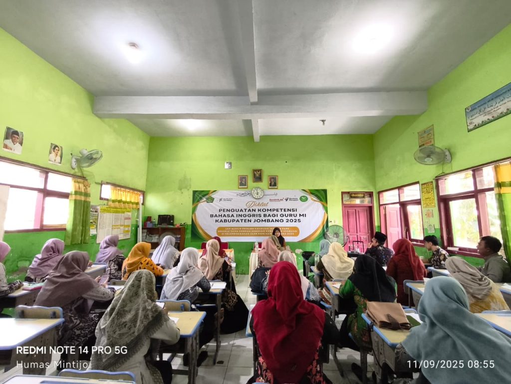 KKMI Kabupaten Jombang bekerja sama dengan LKP World English Kampung Inggris Pare Kediri, menyelenggarakan kegiatan Penguatan Kompetensi Bahasa Inggris Bagi Guru MI Kabupaten Jombang dalam upaya meningkatkan mutu Pendidikan guru Bahasa inggris di Kabupaten Jombang. Peserta dibagi per kawedanan, sebanyak 25 peserta dari kalangan Pendidik se-Kecamatan Bandarkedungmulyo, Kecamatan Perak dan Kecamatan Megaluh untuk 2 hari kedepan kegiatan ini dilaksanakan di Ruangan Aula MIN 3 Jombang yang dilaksanakan pada tanggal 11 dan 12 September 2025. Sebelumnya pembukaan telah dilaksanakan di Graha Gusdur Jombang pada tanggal 27 Agustus 2025, dan agenda kegiatan selanjutnya akan dilaksanakan tanggal 17 – 18 September 2025 di MIN 3 Jombang.